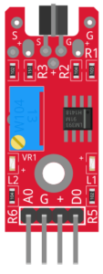This module consists of a transistor to detect touch, an LM393 differential comparator to control the digital output, a 3296W potentiometer to adjust the detection threshold, 6 current limiting resistors, 2 indicator LEDs and 4 male header pins. The module features analog and digital outputs.