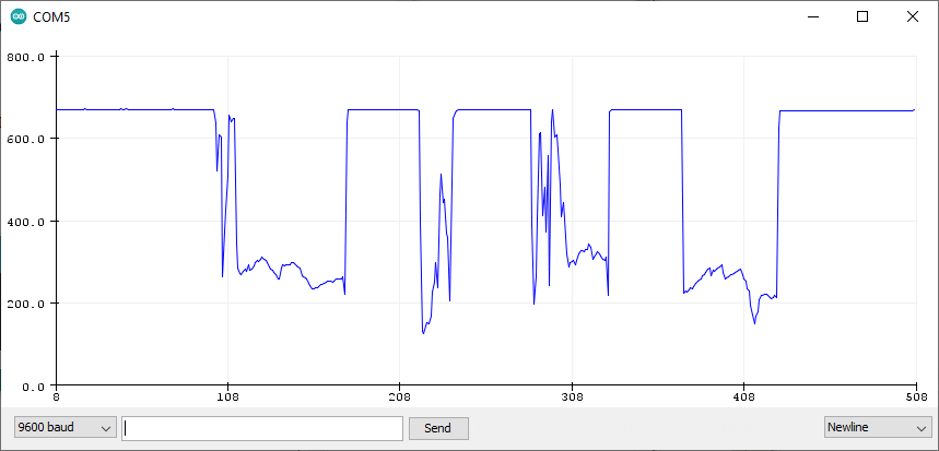 }Use Tools > Serial Plotter on the Arduino IDE to visualize the values on the analog output.