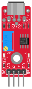 Calibrate the module’s detection threshold using the potentiometer. Turn it clockwise to increase detection sensitivity, or turn it counter-clockwise to decrease detection sensitivity.