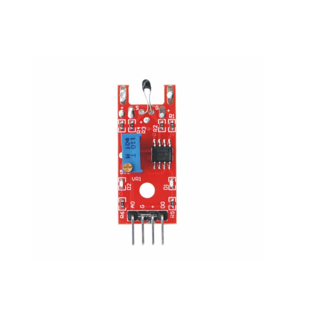 The KY-028 Digital Temperature Sensor measures temperature changes based on thermistor resistance. This module has both digital and analog outputs, there’s a potentiometer to adjust the detection threshold on the digital interface.