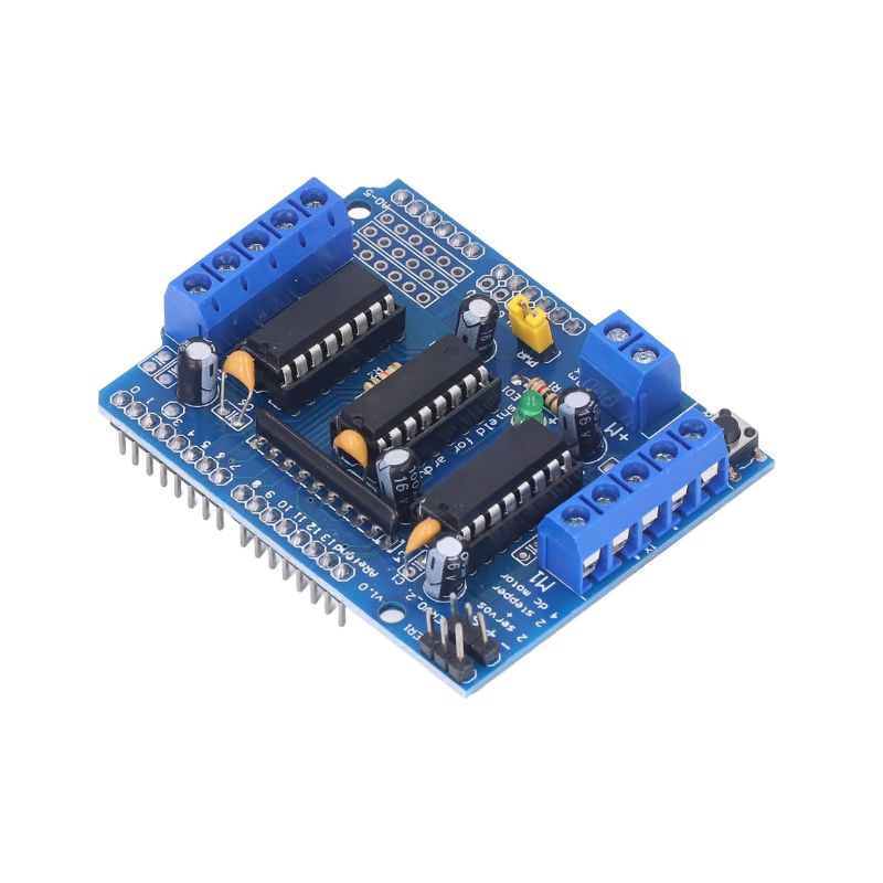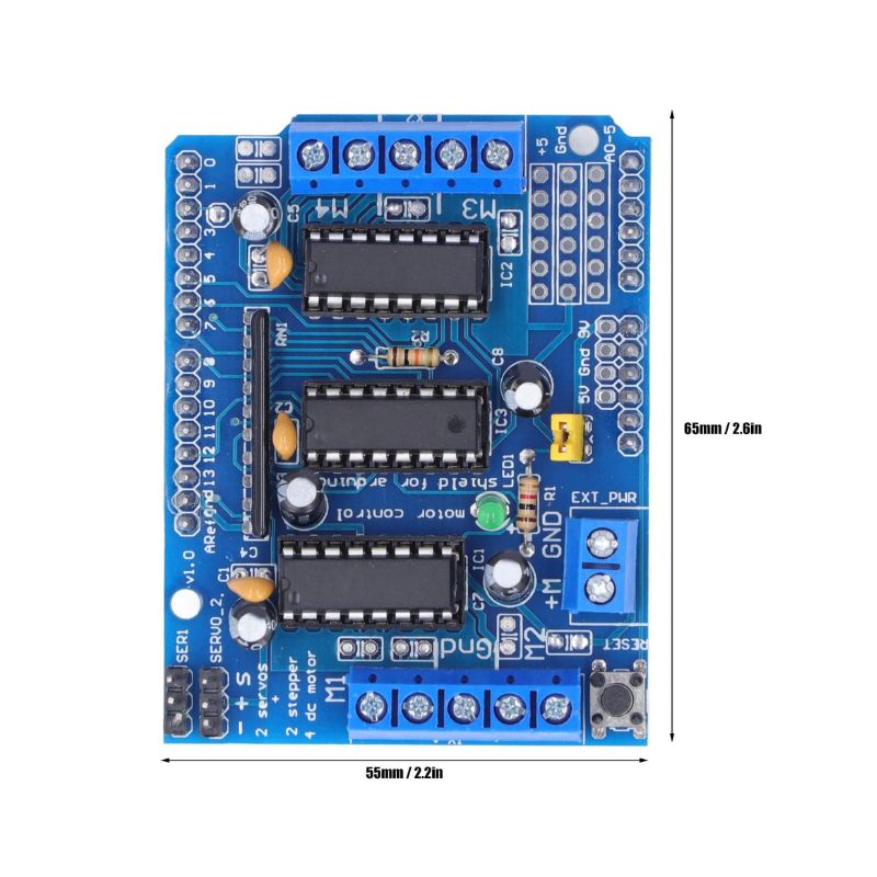 This Arduino compatible motor Driver shield is a full-featured product that it can be used to drive 4 DC motor or two 4-wire steppers and two 5v servos. It drives the DC motor and stepper with the L293D, and it drives the servo with Arduino pin9 and pin10.