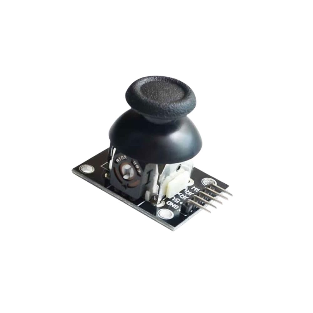 The X and Y axes are two 10k potentiometers which control 2D movement by generating analog signals. When the module is in working mode, it will output two analog values, representing two directions. This module uses the 5V power supply, and value, when reading through analog input, would be about 2.5V, a value will increase with joystick movement and will go up till maximum 5V; the value will decrease when the joystick is moved in other direction till 0V.