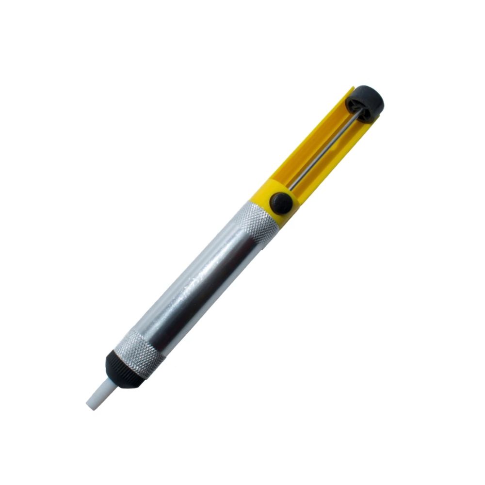 - One-handed solder sucker with powerful suction whether you are right or left-handed, you can using the desoldering pump by just cocking it and pressing the trigger button with one hand when you are ready, the desoldering pump designed with double ring double open and “vacuum” button, which make the sucking power awesome